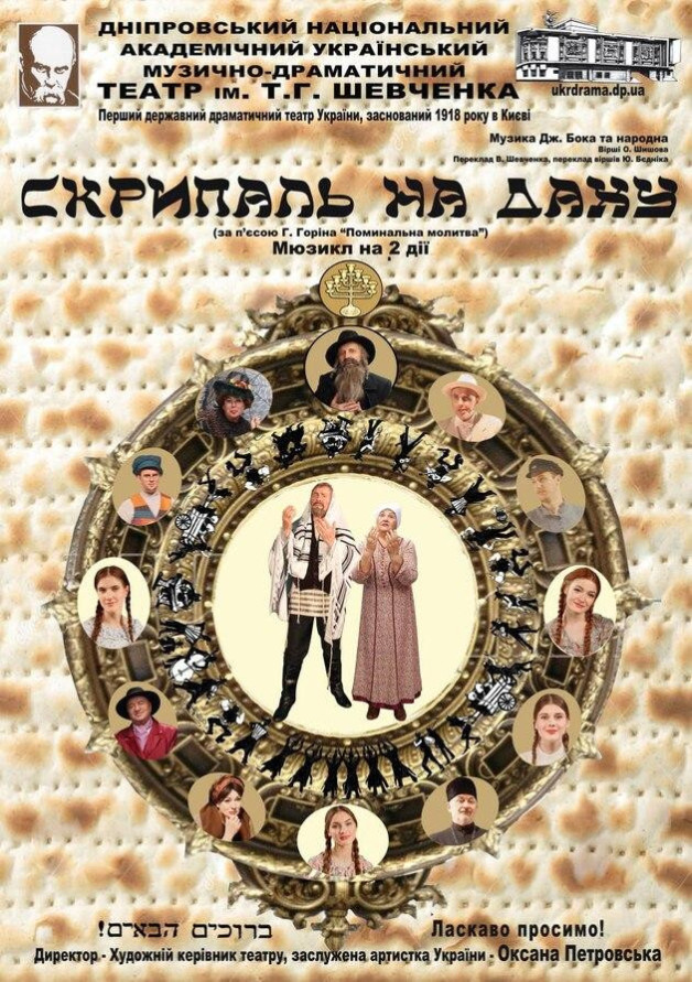 Основою вистави є чудова п’єса Григорія Горіна «Поминальна молитва», написана за мотивами творів Шолом-Алейхема, класика єврейської літератури. Дія відбувається на початку XІX століття в українському селі Анатівка, де «з давніх пір живуть українці, росіяни і євреї. Живуть разом, працюють разом, лише помирати кожен іде на своє кладовище. Такий звичай». У центрі уваги – сім’я небагатого, але мудрого, набожного Тев'є-молочника, який має дружину Ґолду та аж п'ять дочок, три з яких вже на виданні. Також за звичаєм євреї мали одружуватися з євреями, а батьки самі обирали дітям вигідних женихів, як і в багатьох народів світу тих часів. Проте не так сталося, як гадалося: Ґодл, Цейтл і Хава, хочуть залишити рідну домівку з тими, кого кохають, порушуючи віру й традиції, і досить нелегко батькові Тев'є змиритися із цим фактом і благословити молодят. У виставі піднімаються вічні теми кохання, пошуку щастя, пошуку Бога і свого місця в житті. Національний гумор і оптимізм по-філософськи протистоять різним неприємностям у житті персонажів. У мюзиклі звучить чарівна музика знаменитого американського композитора Джеррі Бока, органічно переплітаючись з народною – єврейською і циганською.