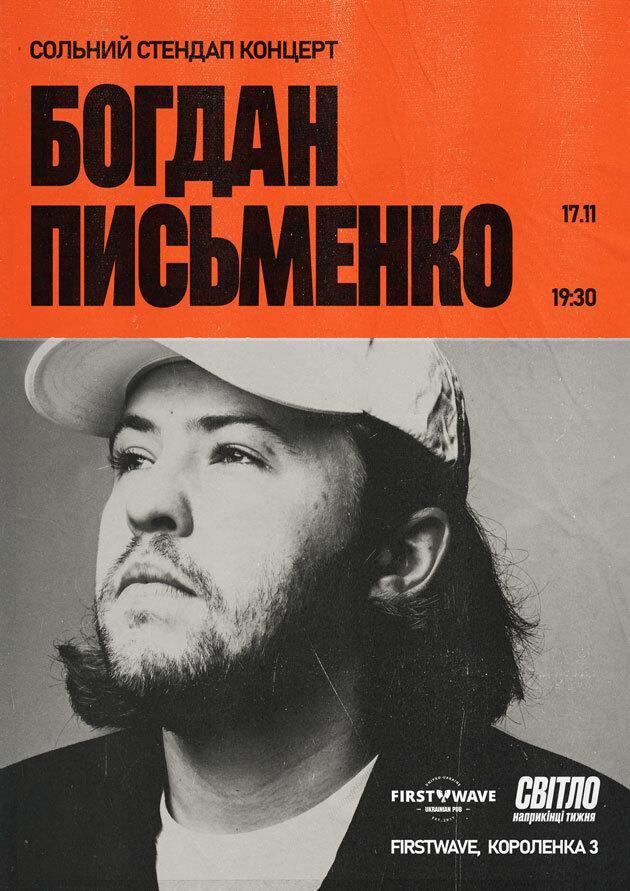 Друзі, в ваше місто їде молода зірка української комедії - Богдан Письменко! В свій час імʼя молодого коміка розривало найкращі майданчики Харкова, звідки комік родом, так у нього той самий «Східний норов», який вам може бути довподоби. Далі стався переїзд до столиці, де Богдан швидко завоював кохання аудиторії за свій унікальний стиль - інтелігентна нахабність. Наразі імʼя Богдана можна побачити в доволі успішному подкасті про інтимні питання «Секс і змісти», одне з найпопулярніших шоу на ютубі зараз «Розгони від Бродячого» та є резидентом нового комедійного ютуб проєкту «Клуб Комедії»! До вашої уваги гідний представник українського стендапу який завоює ваше серце раз в назавжди.